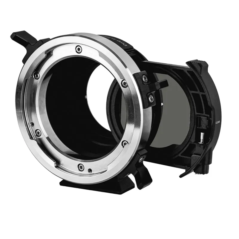 The Meike MK PLTZ C Drop in Filter Mount Adapter allows Nikon Z mount cameras to be used with ARRI PL mount cine lenses and includes a drop-in filter system.