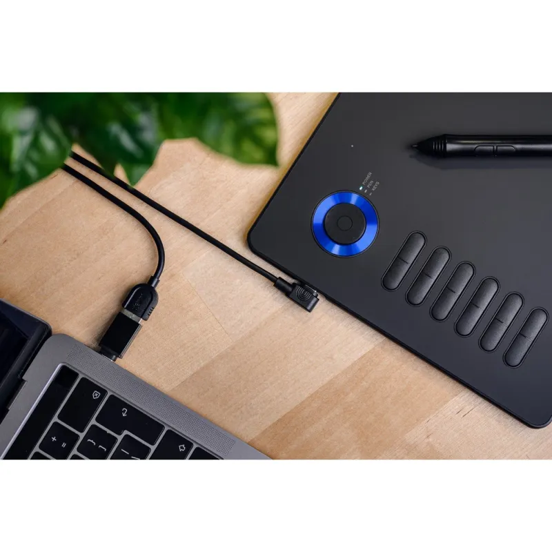 Adapter allows to connect Veikk graphic tablets (or other devices such as mouse, keyboard, flash drive, portable drive, charger) to laptops, tablets and smartphones (supporting OTG technology) equipped with USB-C input.