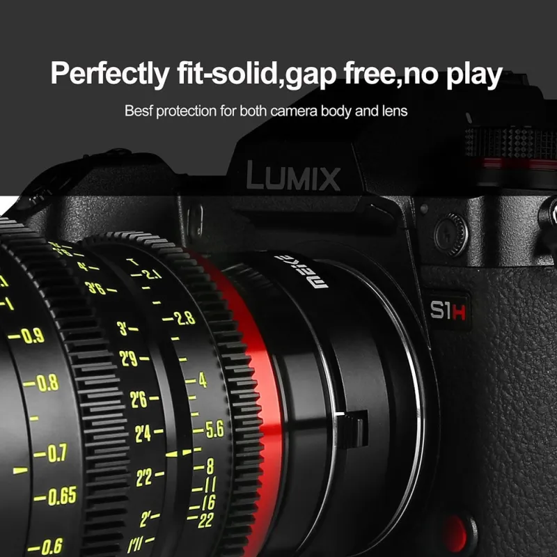 The Meike MK-PLTL Adapter is a lens mount adapter for using lenses with a PL mount on a system camera with L-mount. The adapter has a precise fit with a unique black finish on the inside to prevent reflection. The lens adapter also supports infinite focus. The robust metal construction resists corrosion and wear.