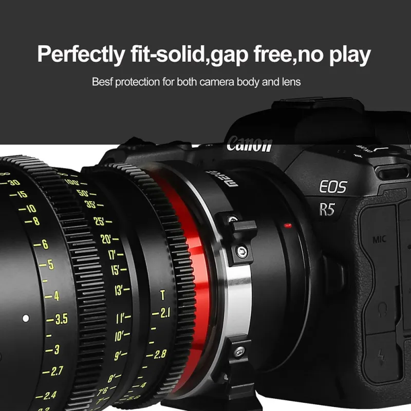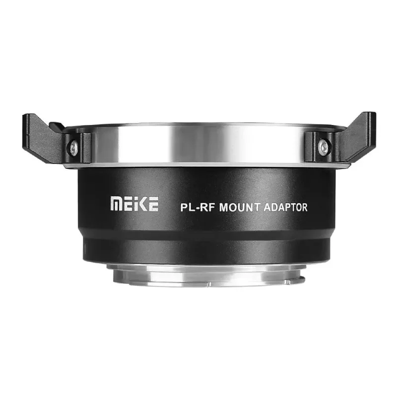 The Meike MK PLTRF Adapter is a lens mount adapter for using lenses with a PL mount on a system camera with Canon RF mount. The adapter has a precise fit with a unique black finish on the inside to prevent reflection. The lens adapter also supports infinite focus. The robust metal construction resists corrosion and wear. ,