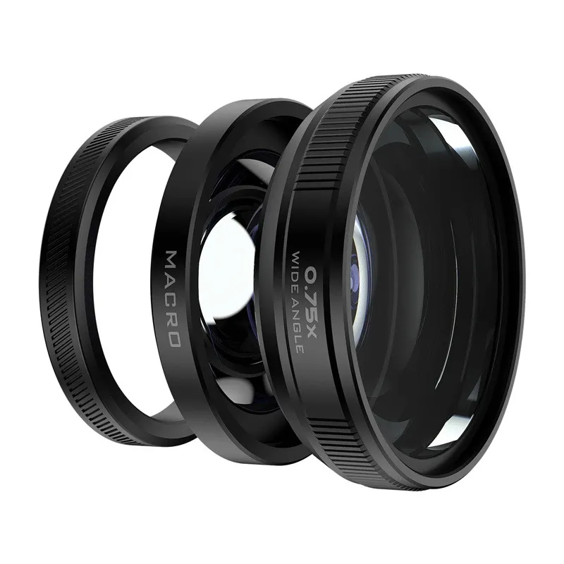 This lens boasts an advanced optical design that reduces distortion and chromatic aberration, ensuring sharp images in various conditions. It provides 0.75x magnification in wide-angle mode and 2x in macro mode for stunning detail.