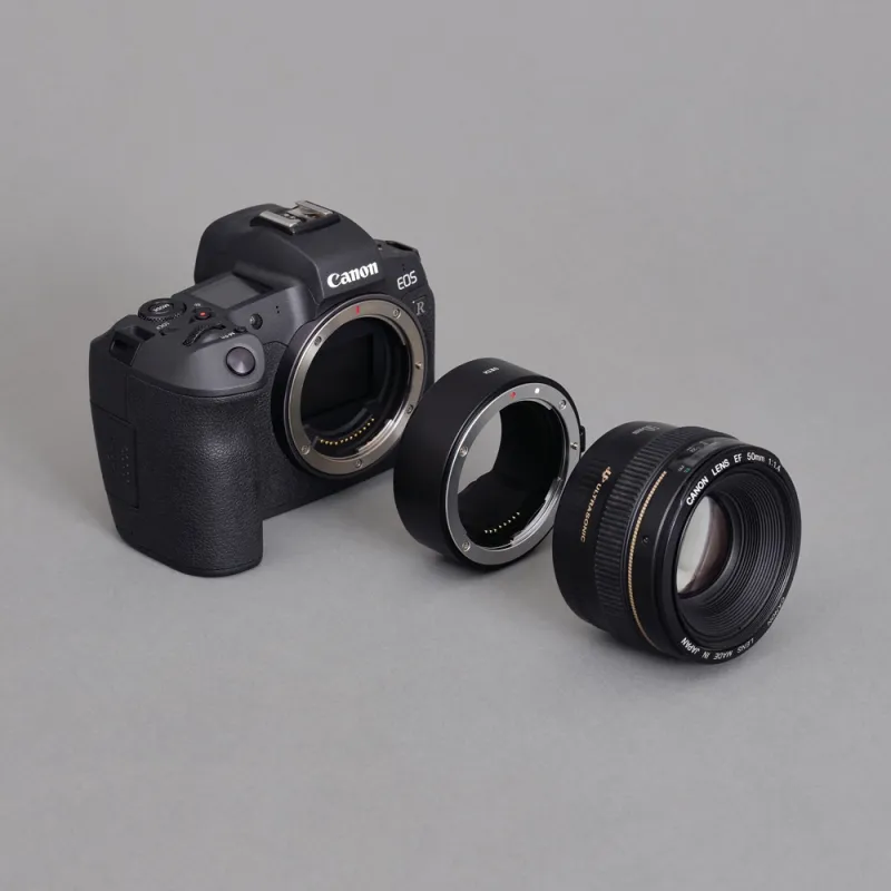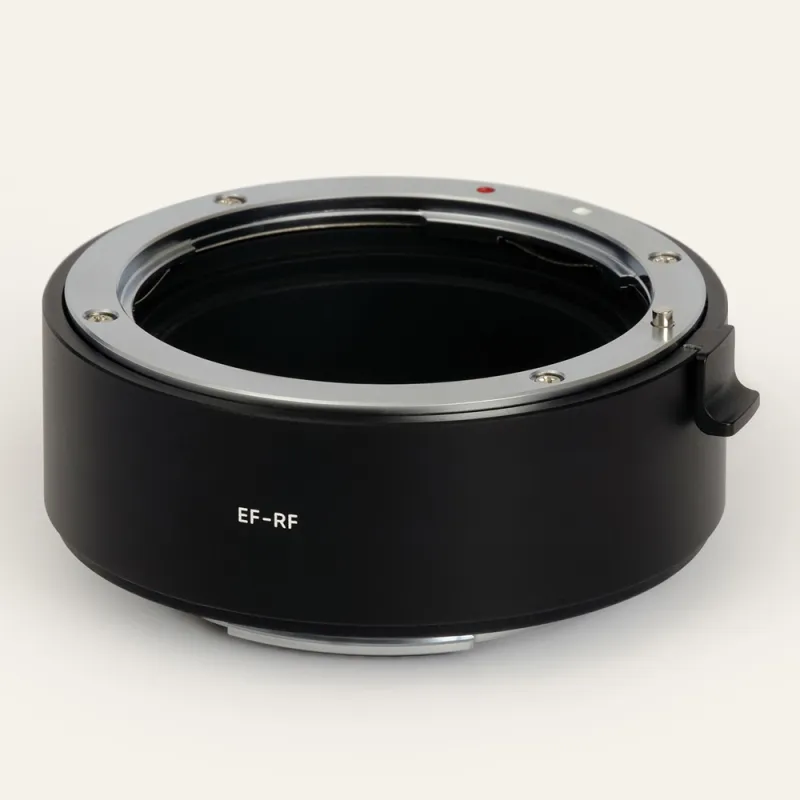 An electronic adapter for connecting any Canon EF mount lens to any Canon RF mount camera body.