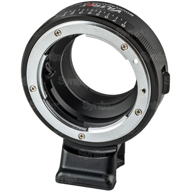 This Lens Mount Adapter from Viltrox is designed to allow a Nikon F-mount, D or G-type lens to be used with a Micro Four Thirds mount camera. It supports manual focusing as well as eight stops of aperture control. The underside of its tripod foot is tapped with a 1/4"-20 accessory thread, providing for direct attachment to a tripod or quick release plate that features a 1/4"-20 mount.