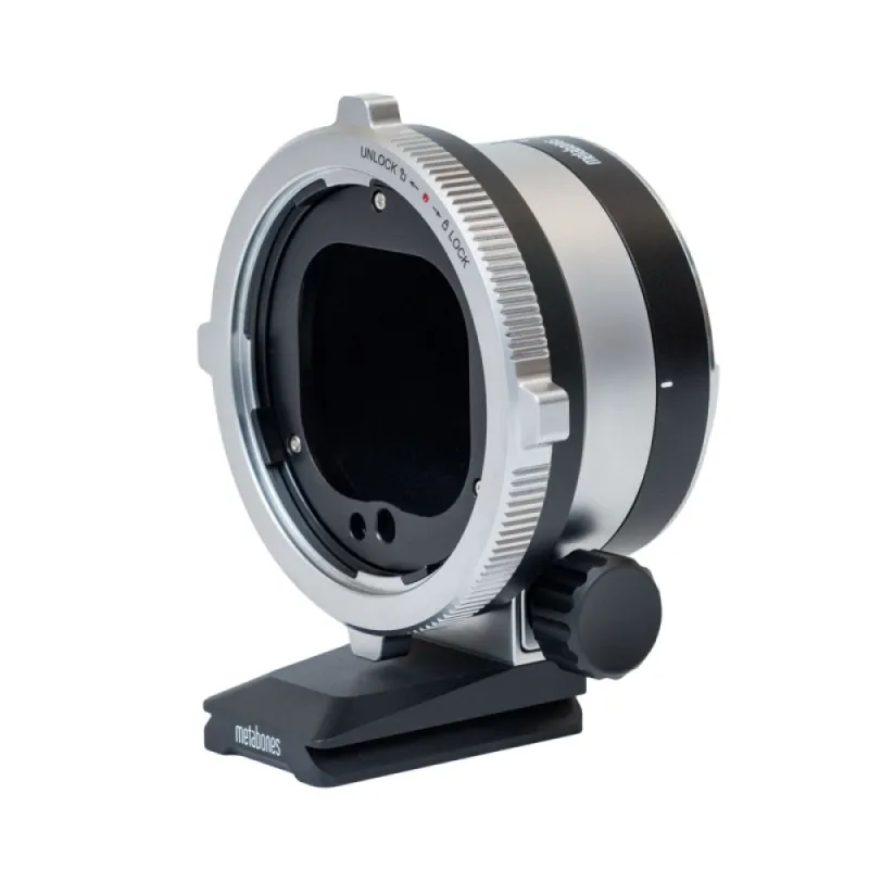 The Metabones Hasselblad V lens to Fuji GFX adapters are equipped with an extremely robust cine-style positive locking mechanism to ensure that no play occurs during focusing. This is especially important when using Hasselblad V lenses for cine work because even though they provide a very smooth focus movement, they tend to require more torque than lesser lenses. The new Ultra also includes a very sturdy 360-degree rotation collar and extra length Arca Swiss style tripod mounting plate.
