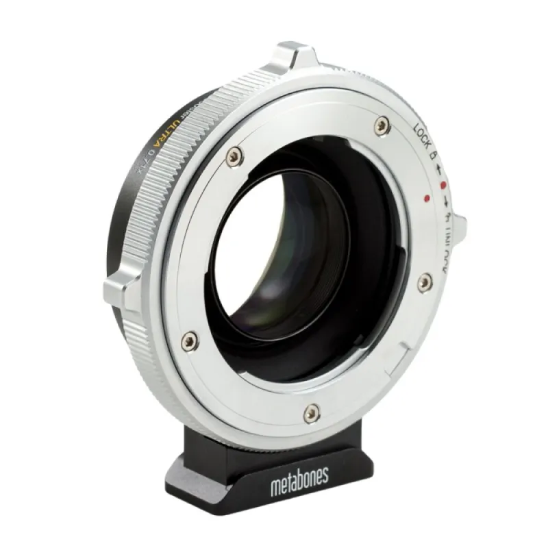 Like the revolutionary original Metabones Speed Booster announced in January 2013, the Speed Booster ULTRA has a magnification of 0.71x, and so it effectively reduces the crop factor of mirrorless cameras with DX-sized sensors, such as Sony E-mount and Fuji X-mount cameras, from 1.5x to 1.07x. However, the new ULTRA design makes very effective use of exotic materials at the furthest limit of glassmaking technology, and as a result is well corrected for use with virtually all full-frame SLR lenses regardless of exit pupil distance. Thus, the Speed Booster ULTRA performs extremely well with professional-grade f/2.8 zoom lenses such as the 24-70mm f/2.8 and 70-200mm f/2.8 zooms by Canon and Nikon to produce 17-50mm f/2.0 and 50-142mm f/2.0 high-speed zooms, respectively. Similarly, high-speed fixed focal length lenses such as a 50mm f/1.2 will be transformed into a 35.5mm f/0.9 lens with excellent contrast and resolution from the center all the way to the edges of the image
