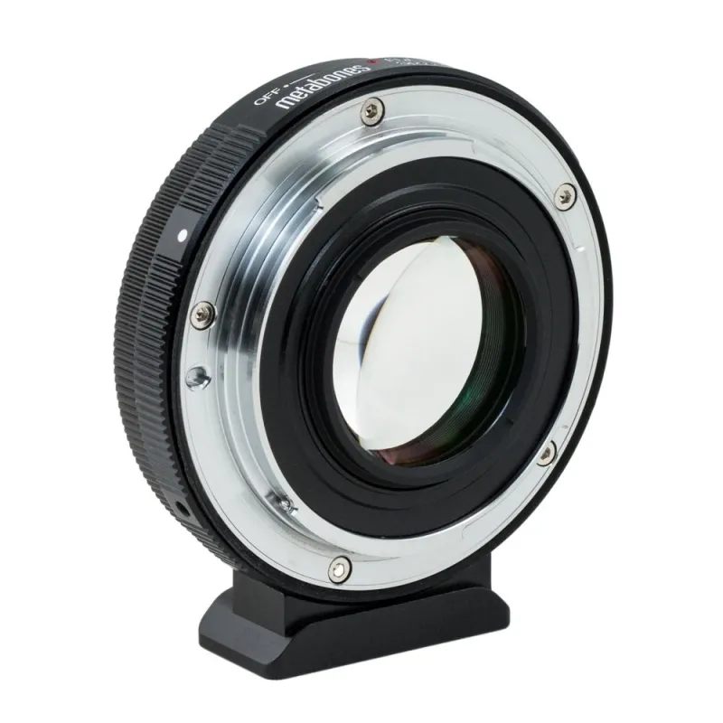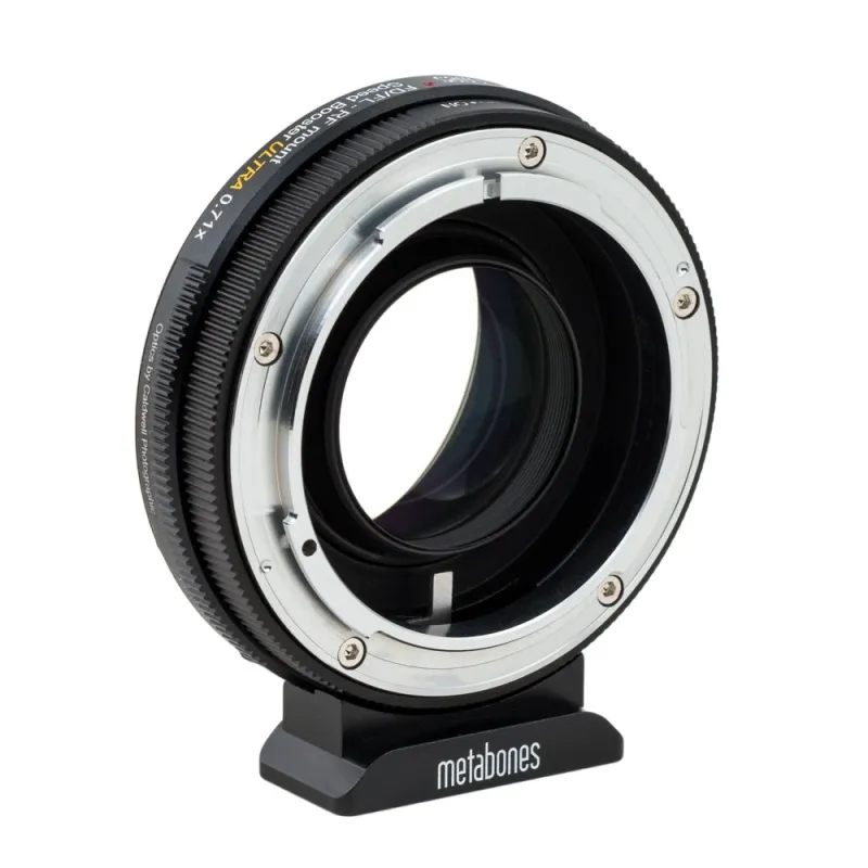 Like the revolutionary original Metabones Speed Booster® announced in January 2013, the Speed Booster ULTRA has a magnification of 0.71x, and so it effectively reduces the crop factor of mirrorless cameras with DX-sized sensors(APS-C), such as Sony E-mount and Fuji X-mount cameras, from 1.5x to 1.07x. However, the new ULTRA design makes very effective use of exotic materials at the furthest limit of glassmaking technology, and as a result is well corrected for use with virtually all full-frame SLR lenses regardless of exit pupil distance. Thus, the Speed Booster ULTRA performs extremely well with professional-grade f/2.8 zoom lenses such as the 24-70mm f/2.8 and 70-200mm f/2.8 zooms by Canon and Nikon to produce 17-50mm f/2.0 and 50-142mm f/2.0 high-speed zooms, respectively. Similarly, high-speed fixed focal length lenses such as a 50mm f/1.2 will be transformed into a 35.5mm f/0.9 lens with excellent contrast and resolution from the center all the way to the edges of the image.