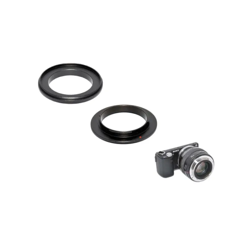 The Caruba Reverse Ring Sony NEX is threaded on one side to fit the front of your lens, and the Reverse Ring is threaded on the other to fit your camera body. This way you can mount it on the front of your lens and then attach the front of your lens to your camera body. This considerably increases the possibilities with macro.