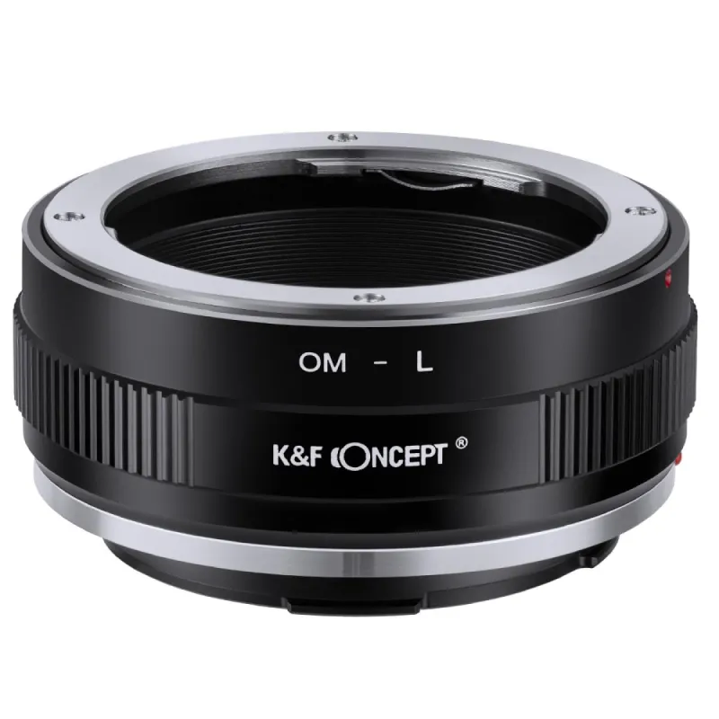 The K&F High Precision Lens Adapter Mount OM-L allows you to attach Olympus OM screw mount lenses to L-mount cameras like Leica, Panasonic, and Sigma. This manual adapter does not support auto focus or aperture control, and requires an initial setting adjustment.