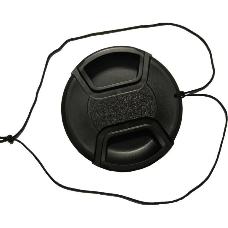 This lens cap snaps on over the lens of the camera and has a retaining string so the cap hangs with the camera when shooting. This helps to prevent loss of the lens cap. Lens caps protect the camera's lens from scratches, fingerprints and the elements when the camera is not in use.