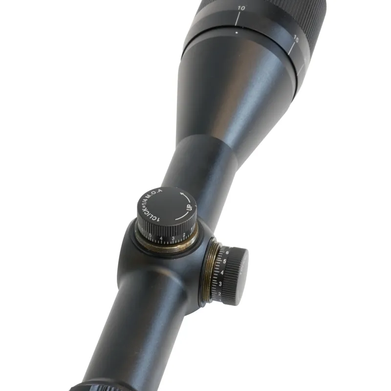 Pretatstarošanas pārklājums sniedz labu spilgtumu un atvieglo mērķēšanu sarežģītos gaismas apstākļos. Paralakses pielāgošana (AO) no deviņiem metriem līdz bezgalībai. Rastru var noregulēt ar ¼ leņķa minūtes (MOA)par klikšķi.