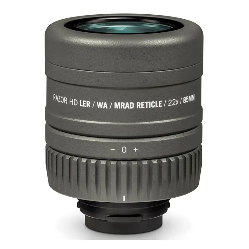 Replace the standard zoom eyepiece on your 27 60x85mm Razor HD spotting scope with the Vortex Razor HD Ranging Eyepiece MRAD to improve your accuracy and take your shooting to the next level. The fixed magnification provides a wide viewing angle to scan the scene in front of you and the in view variable reticle helps you estimate the distance to and size of your target. This reticle is based on MOA.