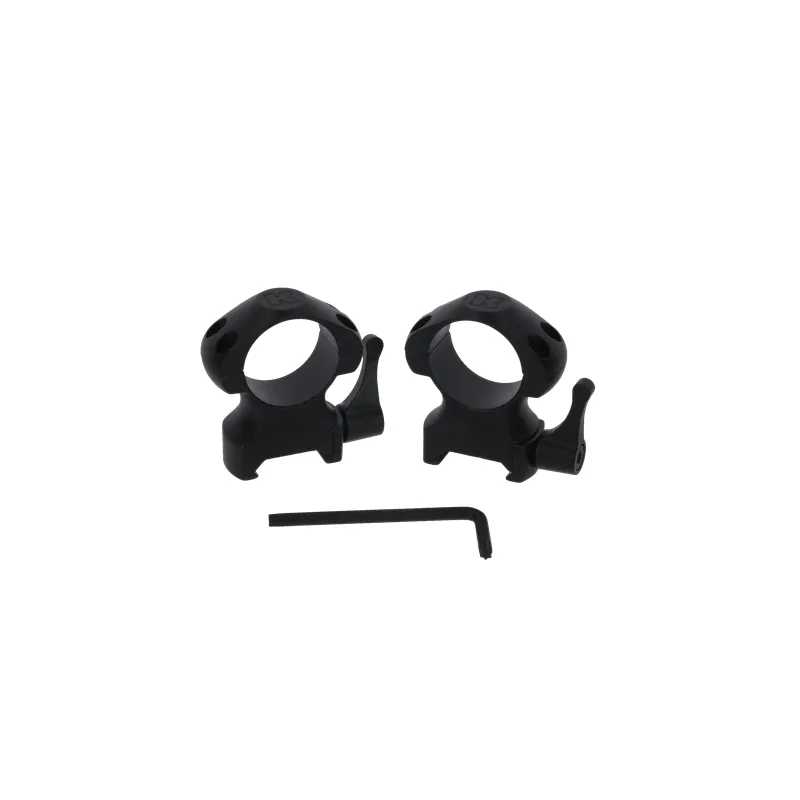 The Quick Release Mounting Rings 25.4 mm High from Konus consists of two high mounting rings with which you can easily mount your rifle scope on a rifle. These rings are suitable for tubes with a thickness of 25.4 mm and are compatible with Weaver and Picatinny rails.
