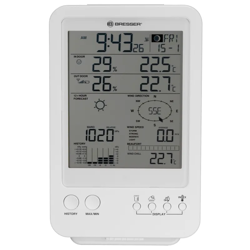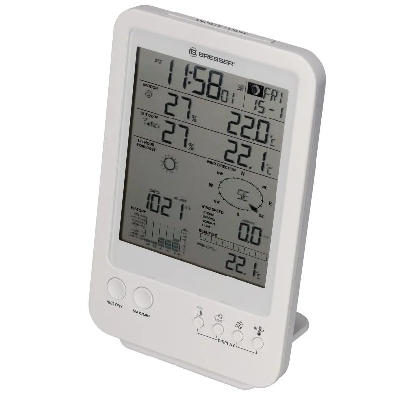 The new BRESSER Weather Station 5-in-1 white combines in a unique way a compact design with an extensive information service. The very