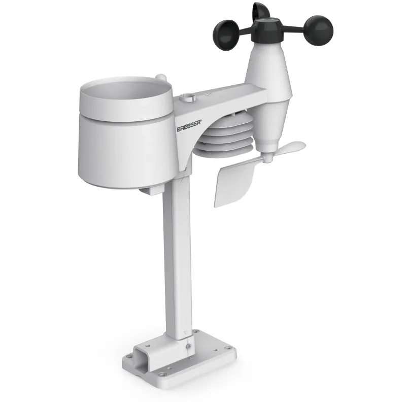 The BRESSER Beaufort 5-in-1 Weather Station has everything you need to stay on top of the weather. The weather station also has a large colour display with an intuitive, easy-to-read layout. Thanks to the elegant design , the device blends in perfectly in any home - from a country house to minimalist decor. The outdoor temperature and humidity readings from the 5-in-1 outdoor sensor are supplemented by the integrated thermal/hygro sensor on the base station, which provides precise data on indoor temperature, humidity and air pressure . And so that you always know which way the wind is blowing from - as well as how much it's rained - the weather station also features an anemometer and a rain gauge .