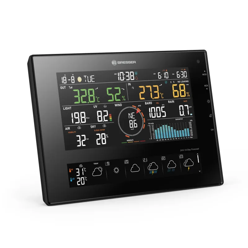 Stay up to date on your local weather and indoor climate easily, whenever and wherever, with the BRESSER 11-Day 4Cast CV WiFi Weather Station 7-in-1 .