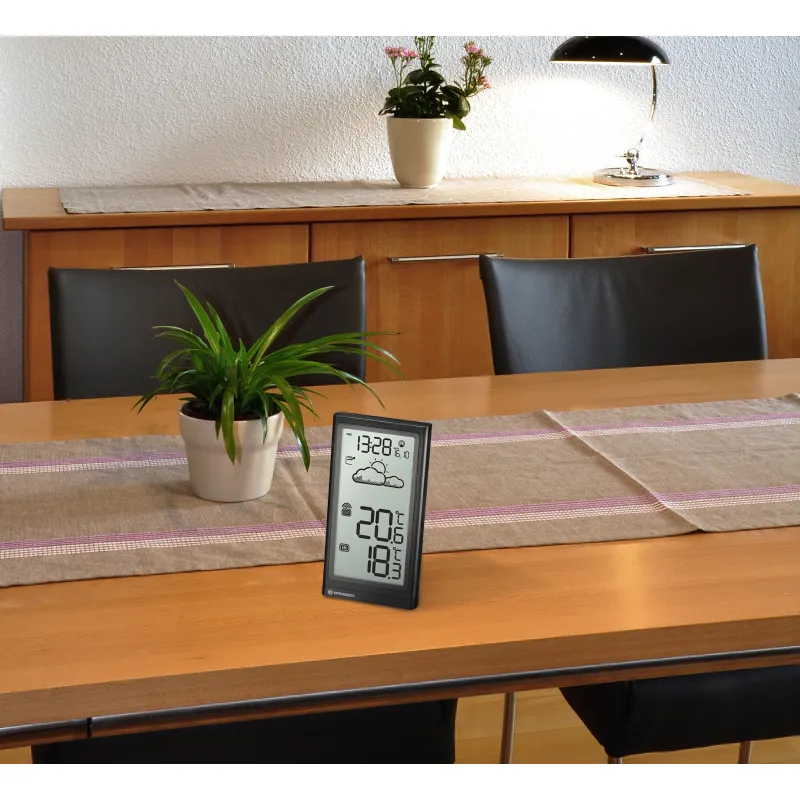 This radio weather station shows you the weather trend for the next few hours on the clearly arranged display in addition to current values.