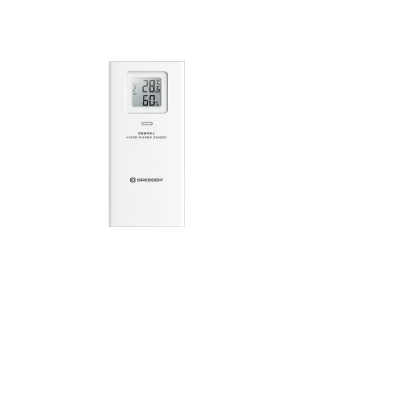This high-performance outdoor temperature and humidity sensor is the perfect extension for your BRESSER weather station. The sensor transmits measurement data over an ultra-long wireless range of to 150 metres at a frequency of 868 MHz . There are seven different wireless channels available to choose from. Thanks to the built-in display , you can also use the precision thermo-hygro sensor as a standalone solution without a weather centre.