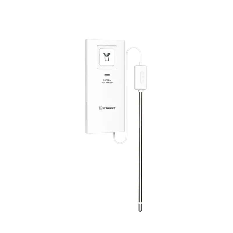 This additional sensor allows you to take two additional practical measurements with your BRESSER weather station. In addition to the soil temperature , the sensor can also measure the soil moisture – ideal for plant lovers and gardeners. Measurements are sent to the base station at 60 second intervals . The soil moisture meter can be positioned up to 150 metres away from the base station. There are also 7 different channels to choose from. And thanks to the weatherproof housing , the wireless sensor is able to withstand adverse weather conditions.