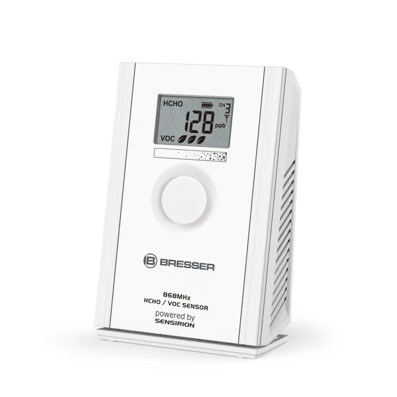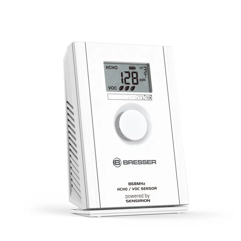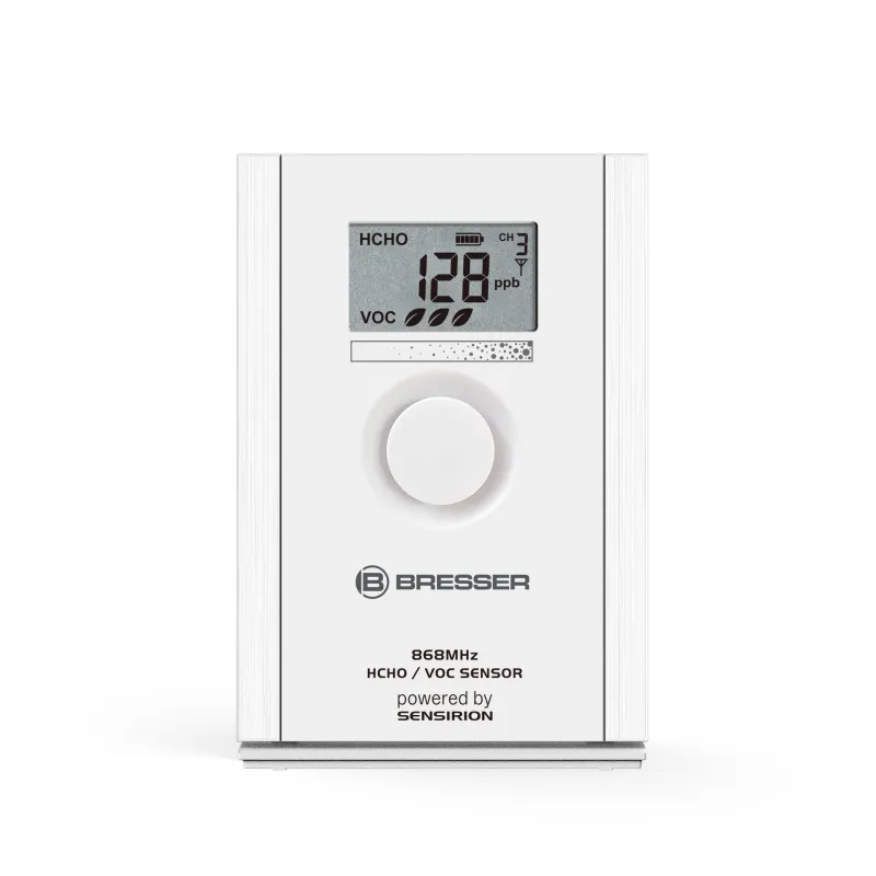 If there’s something in the air, it’s probably not very good for us. This could be formaldehyde (HCHO) or Volatile Organic Compounds (VOC) , which can enter our ambient air through things like furniture, materials, tobacco smoke, paints or adhesives. With the BRESSER HCHO + VOC Sensor , you can keep an eye on the air quality and take targeted measures to improve the situation. The integrated LC display of the sensor displays precise formaldehyde readings as well as the VOC level in the air.