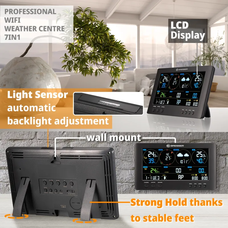 Risk more than just a glance— this BRESSER base station displays reliable weather data from your 7-in-1 external sensor at an additional location.