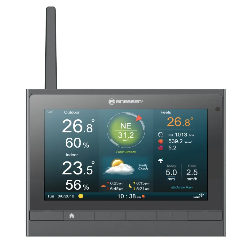 Would you like to share your weather data with your neighbours? Or perhaps your base station didnt survive your recent move or your childs heavy handling, and youre looking for a replacement ? Whether as an extension or replacement, this base station with a large 17.8 cm screen allows you to access all of the functions on your BRESSER MeteoChamp HD Wi-Fi weather centre. It also features the usual range of display modes , which display the data from up to 7 wireless sensors (not included), such as pool and soil temperature measurements.