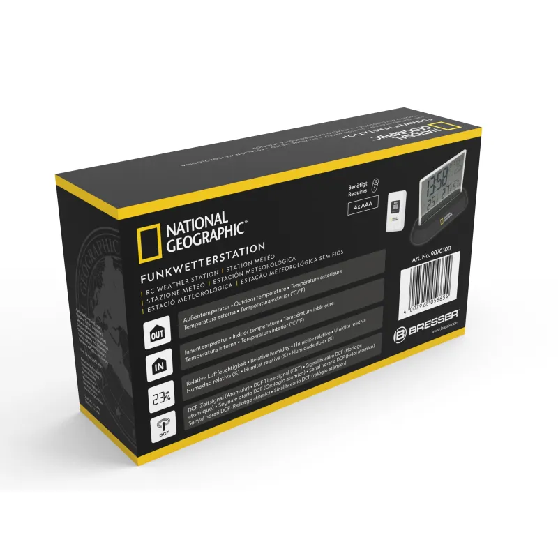 The National Geographic wireless weather station Translucidus connects large digits on a futuristic- transparent display with a simple and elegant stand. The operating elements have been placed on the rear side for protection, thanks to the transparent display, these are still clearly legible. In addition to the large radio clock time , the display also shows outside- and inside temperature permanently next to each other. A real eye-catcher for every desk. The Weather station can also be used as alarm clock and is equipped with a sleep function .