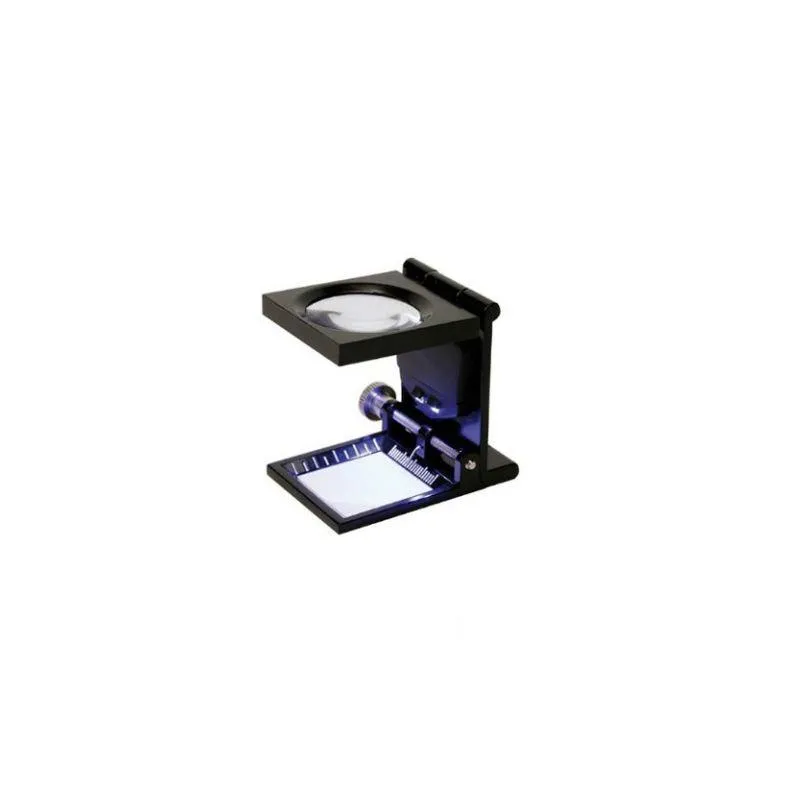 The compact magnifier is 50x50x30mm when folded, allowing you to take it anywhere. When unfolded, you control the LED with the switch at the back. The Konus 6x with LED is also equipped with a needle so you can easily take measurements.