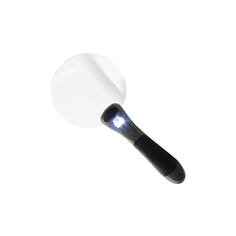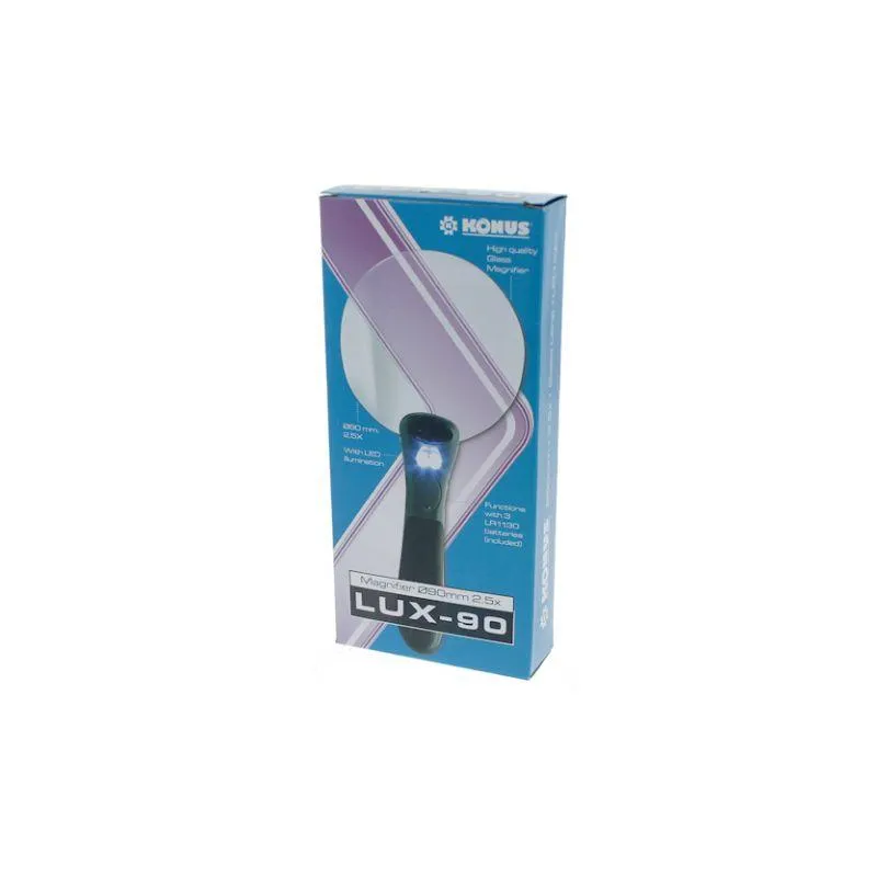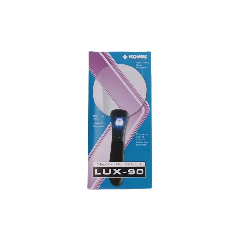 The Konus Handheld Magnifier Lux-90 2.5x with LED is a universal lightweight steel magnifier. This hand magnifier has a 2.5x magnification and a large lens (90mm), with which you can enlarge a large part of an object. For high comfort, the handle is very ergonomically designed. The lens of the magnifying glass is made of acrylic. Compared to glass lenses, acrylic is lighter in weight and has a higher scratch resistance.