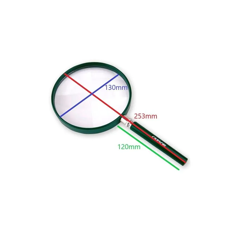 The Carson Handheld Magnifier 2x130mm is a universal magnifying glass with a very large lens surface. This XL-sized magnifier has a lens diameter of 130mm, which makes it the largest lens in the handheld lens series.