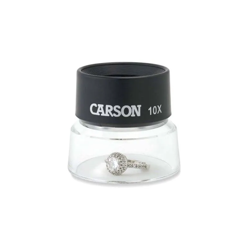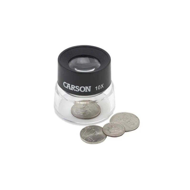The Carson LL-10 is a standing loupe with a 10x magnification and 30mm lens. A standing loupe is a universal magnifier with glass sidewalls, allowing plenty of light to reach the subject.
