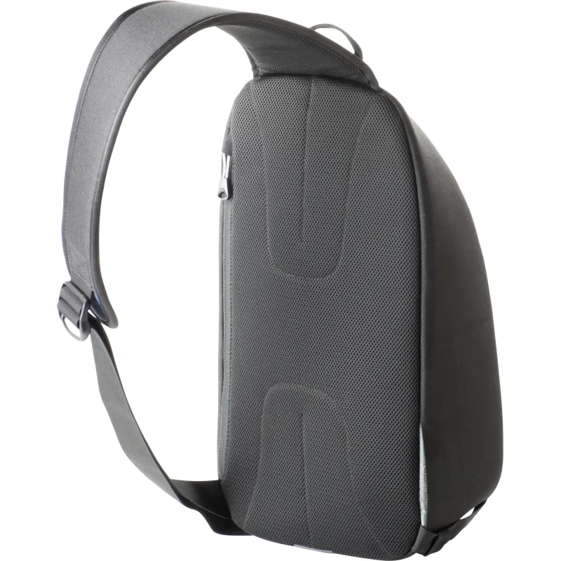 Lightweight sling bag for mirrorless camera system, tablet, chargers, memory cards, and more.