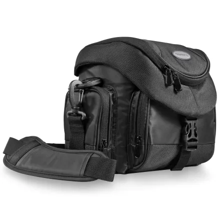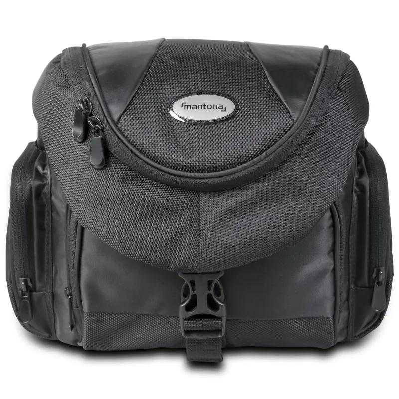 The mantona Premium photo bag unites all advantages of a compact camera bag with a classical, noble design. Besides a DSLR camera with an 18-55 mm lens attached this camera bag provides ample space for another lens or a flash.