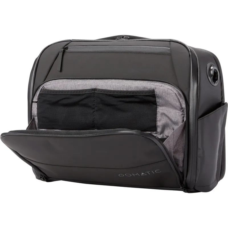 Transport your gear in comfort with the Messenger Bag V2 from Gomatic. Designed for everyday use, this messenger bag features a weather-resistant exterior and customizable interior panels as well as a TSA-ready laptop compartment for devices up to 16.3" wide. Wear the Messenger Bag V2 over your shoulder using the adjustable Fidlock strap, or remove the strap entirely and carry the bag like a briefcase. In addition to an RFID-blocking pocket and magnetic water bottle pockets, this bag also sports a full-perimeter zipper for easy and secure closure. An integrated roller bag sleeve allows you to easily attach the bag to luggage for quick transport. The Gomatic Messenger Bag V2 comes with a retractable key leash and a protective sunglasses case.