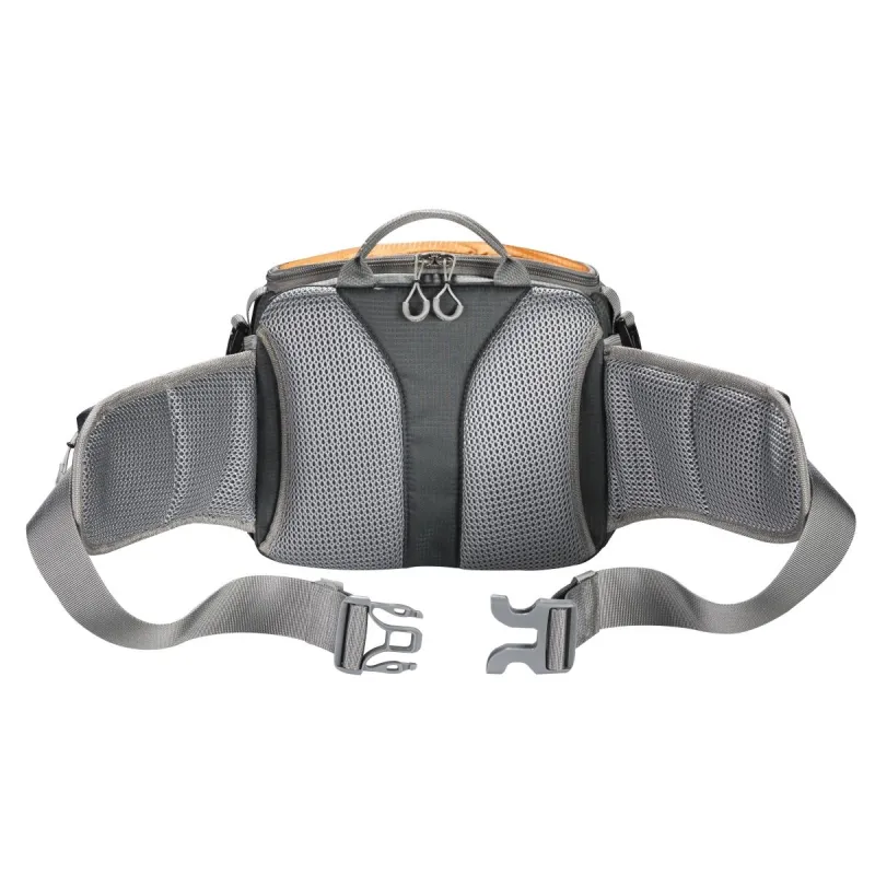 With integrated zip closed pockets on the lap belt, this compact bag provides adequate space for purse, smartphone or keys. The two net compartments on the sides of the bag can be used for beverage bottle or further objects. The lap belt can also be hidden behind the padding, if it is no longer required. Its length is up to 158cm. The dimensions of the bag provide sufficient space for 1 flash and 1 lens as well as a camera with lens attached, and further accessories. The reflection strips and the eye-catching colour ensure high visibility in darkness.
