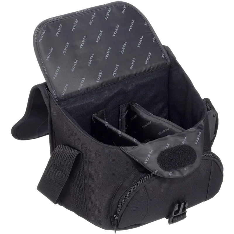 Pentax SLR Multi Bag fits a DSLR with a zoom lens plus an extra lens. The bag has a padded interior which protects the camera from bumps. An extra pocket is perfect for storing smaller accessories like batteries and memory cards. For comfortable carrying, the bag features an adjustable shoulder strap with a shoulder pad.