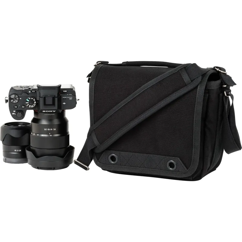 • Examples: Sony A7rIII with 70–200mm f/2.8 attached (hood extended), 16–35mm f/4, 24–70mm f/2.8 and a flash