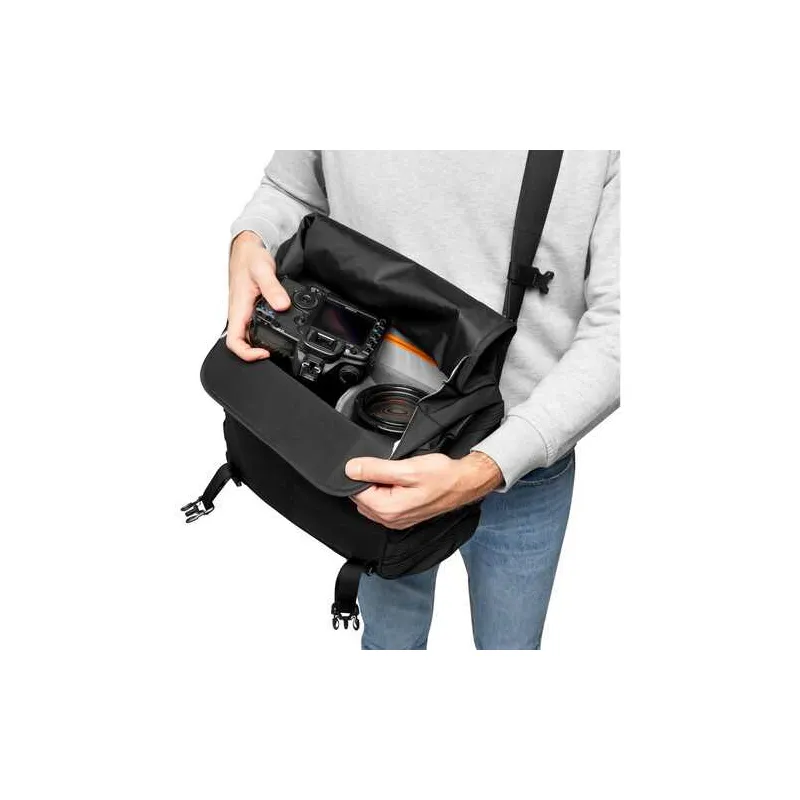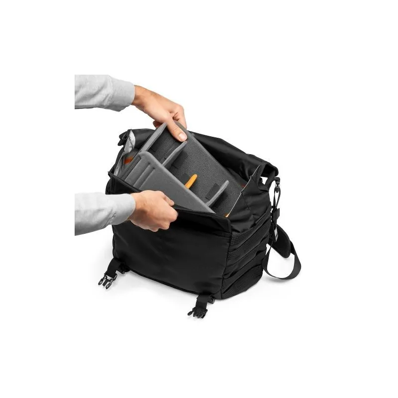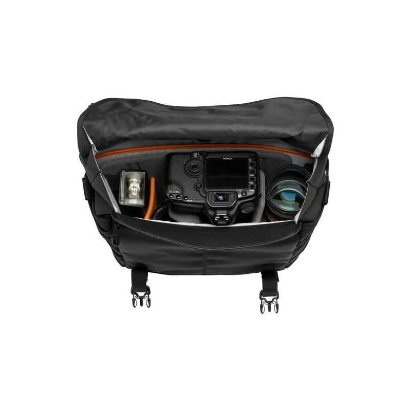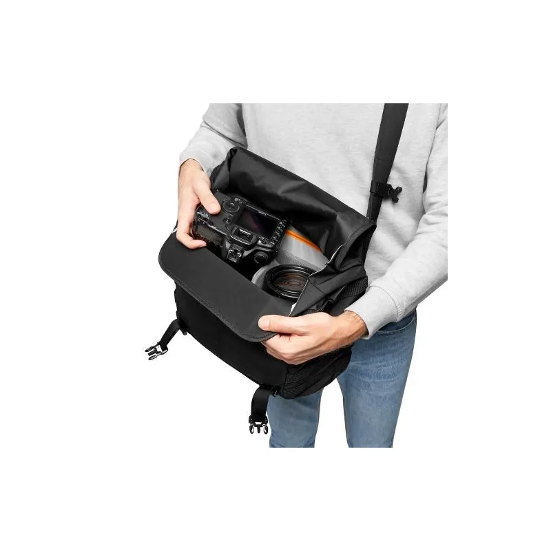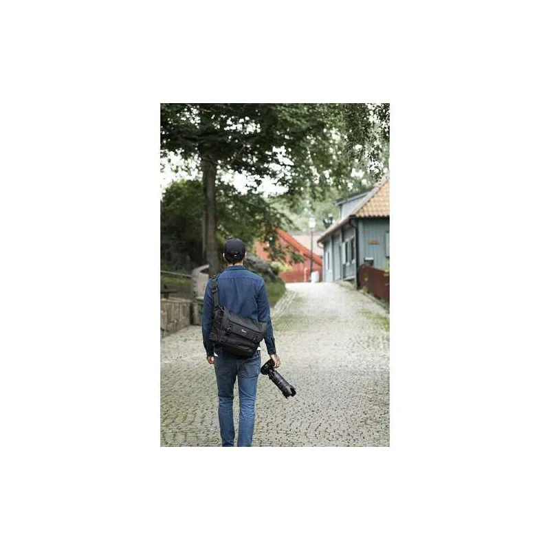 Elastīga un kompakta kurjera soma ar plānu dizainu un ļoti pielāgojamu sadalījuma sistēmu. Piemērots profesionālai DSLR kamerai, 70-200 F/2.8 (noņemts), diviem citiem standarta objektīviem, zibspuldzei un 13” klēpjdatoram.