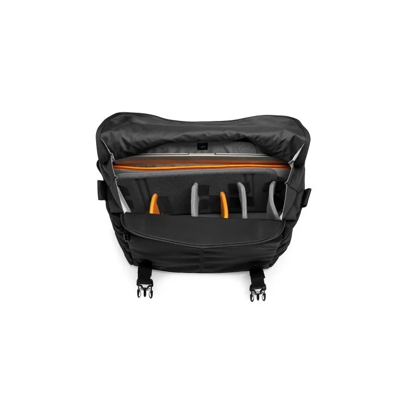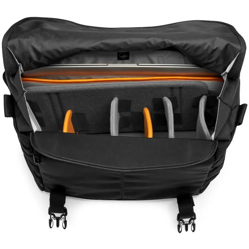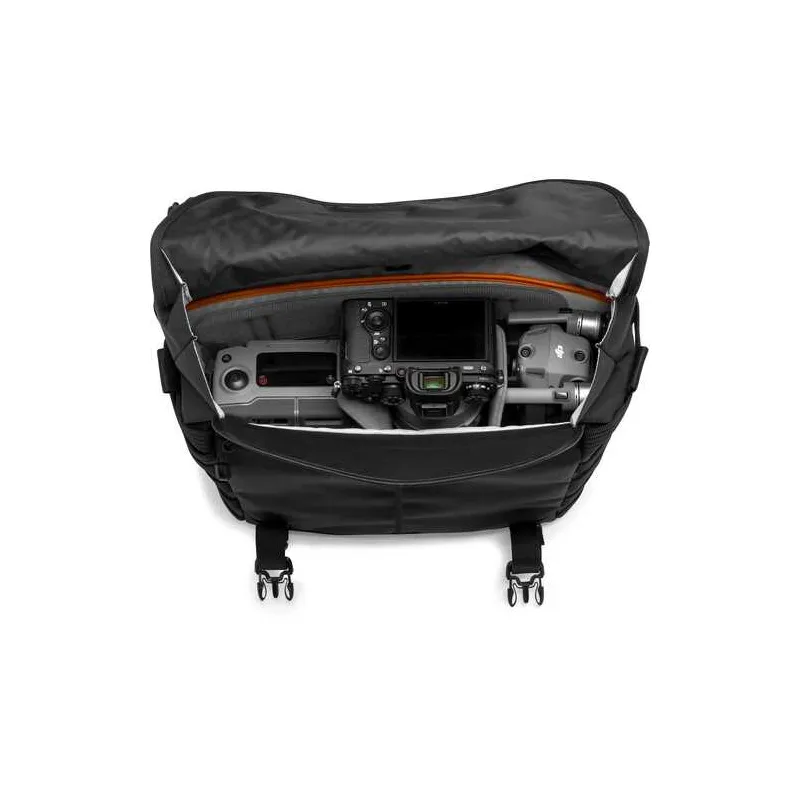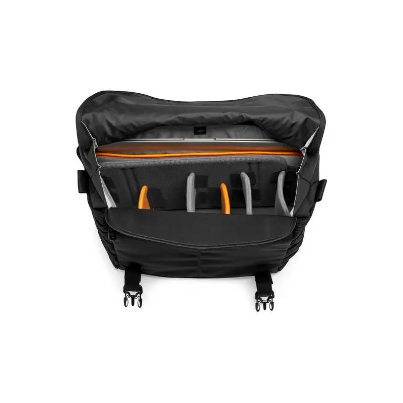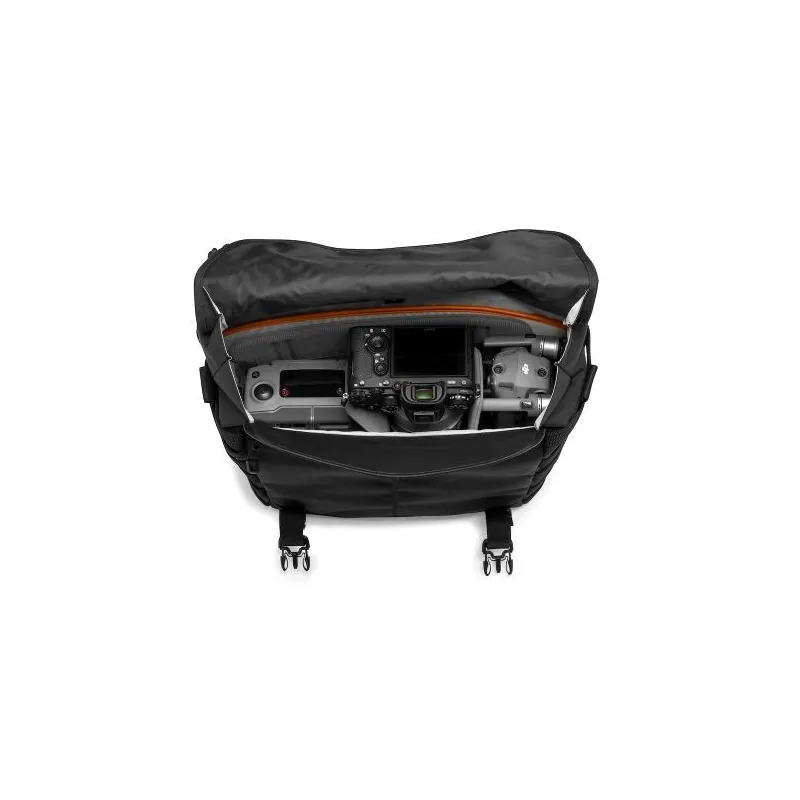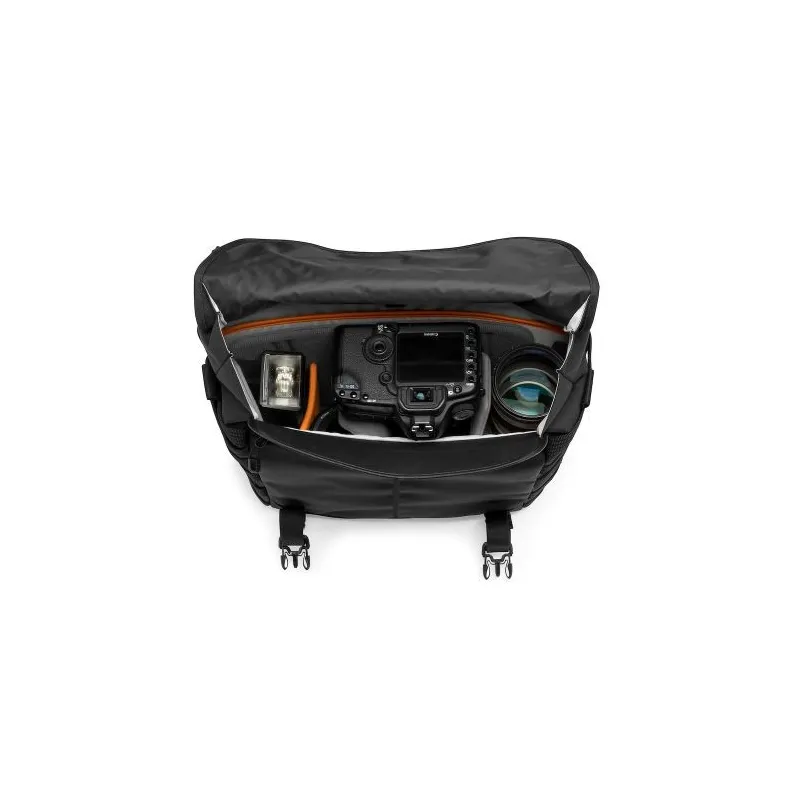Elastīga un kompakta kurjera soma ar plānu dizainu un ļoti pielāgojamu sadalījuma sistēmu. Piemērots profesionālai DSLR kamerai, 70-200 F/2.8 (noņemts), diviem citiem standarta objektīviem, zibspuldzei un 13” klēpjdatoram.