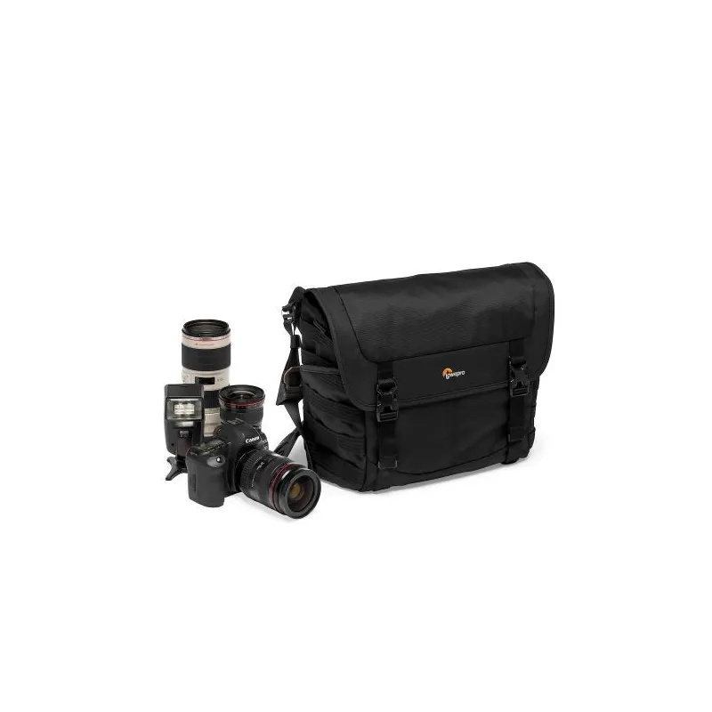 Lowepro ProTactic MG 160 AW II ir plāna kurjeru soma. Tajā ietilpst profesionāla DSLR fotokamera, 70-200 F/2.8 objektīvs (noņemts), diviem citi standarta objektīvi, zibspuldze un 13” klēpjdators. Noņemama Quickshelf™ sadalījuma sistēma ļaut to viegli pārveidot par aizsargājošu klēpjdatora kurjeru somu.