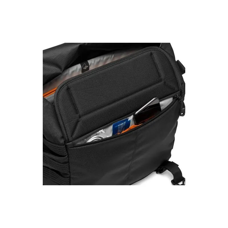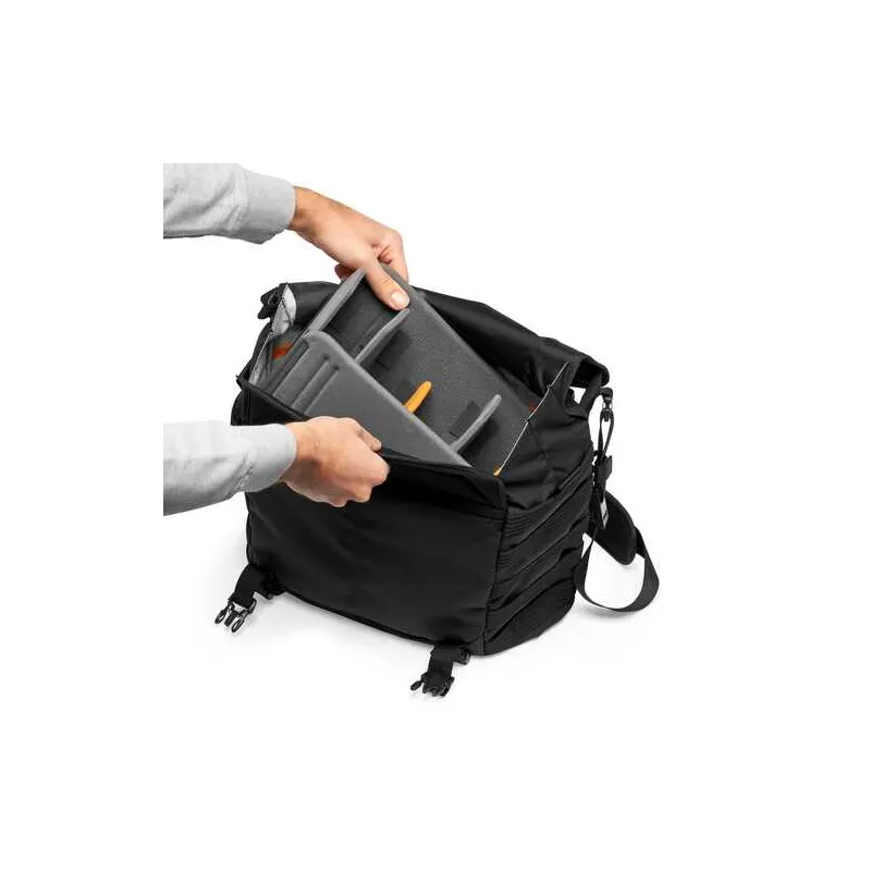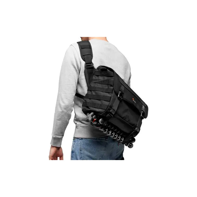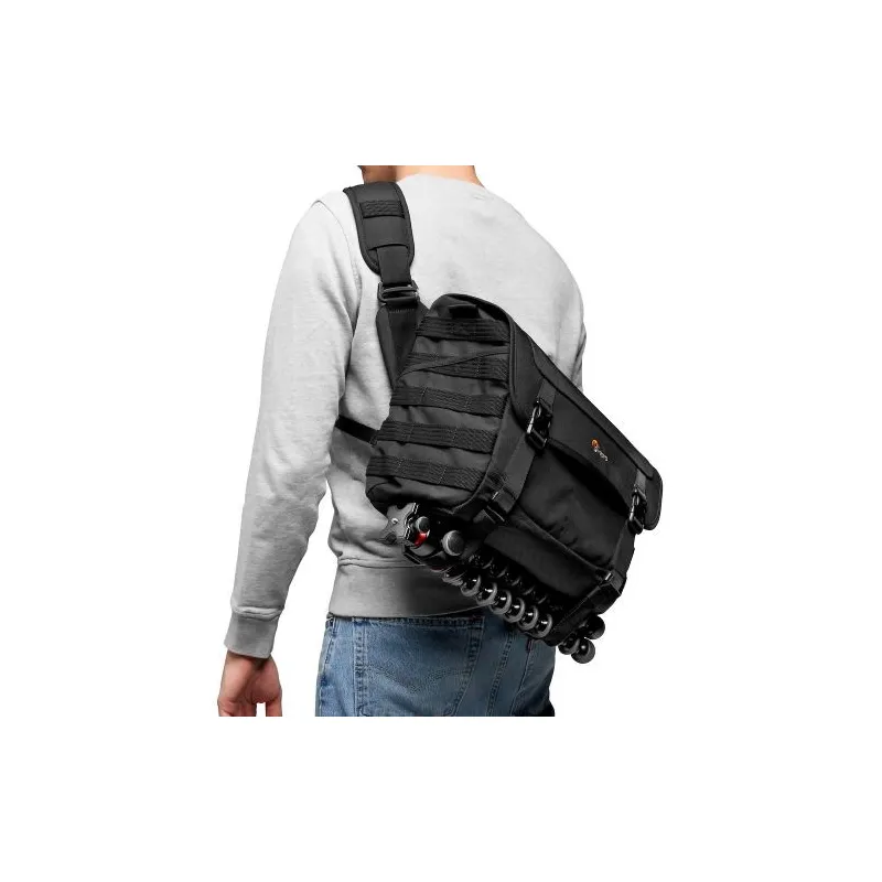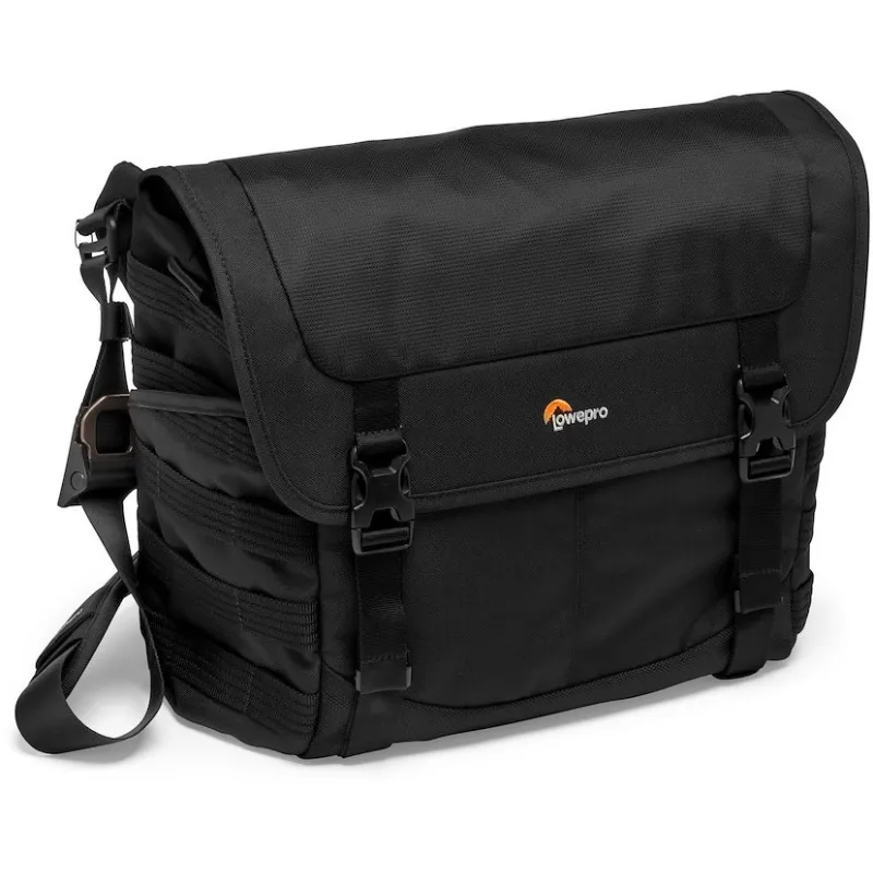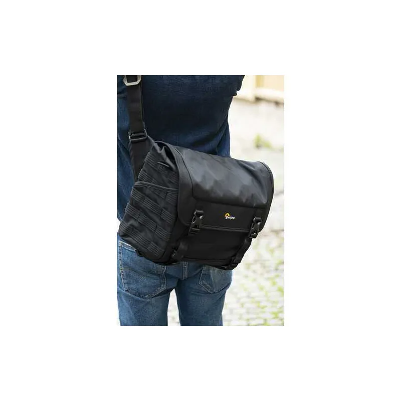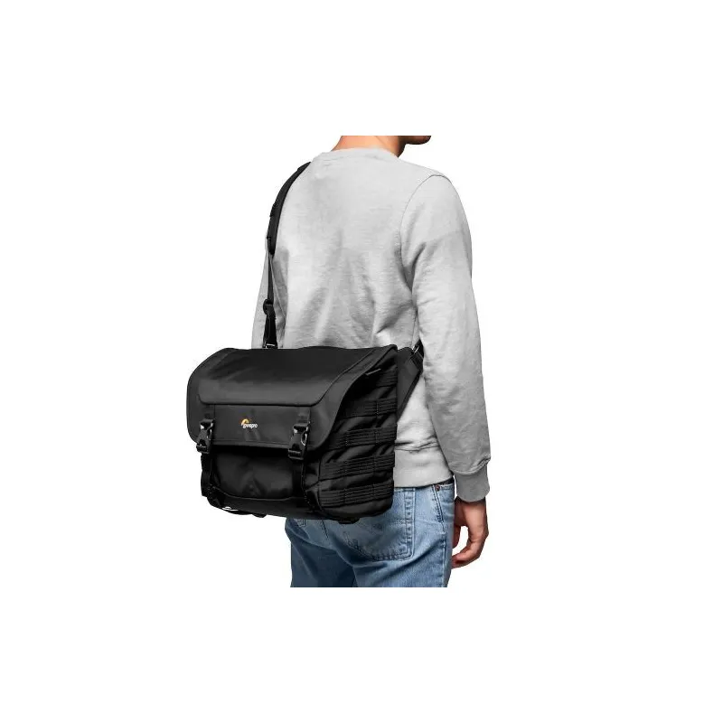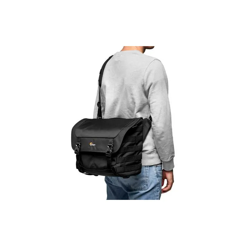 Offering you versatile storage space for your gear, the black ProTactic MG 160 AW II Camera Messenger Bag from Lowepro can carry everything from photo & video gear to binoculars or even a small drone. Padded, removable dividers are customizable to keep your gear from bouncing around, and zippers keep everything secure. A front zippered pocket acts as a storage space for caps or other accessories, and an All-Weather (AW) cover can be slipped on for when the weather turns bad. You can carry the bag three ways for maximum mobility, accessibility, and security.