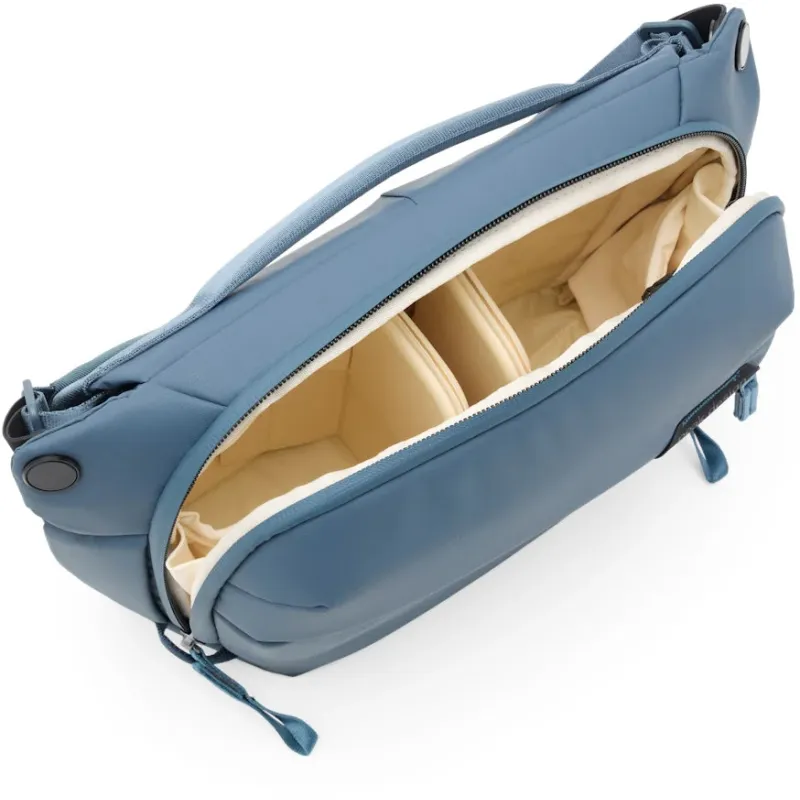The Everyday Sling has customizable padded dividers for efficient organization of camera equipment and personal items, ensuring quick access to your belongings.