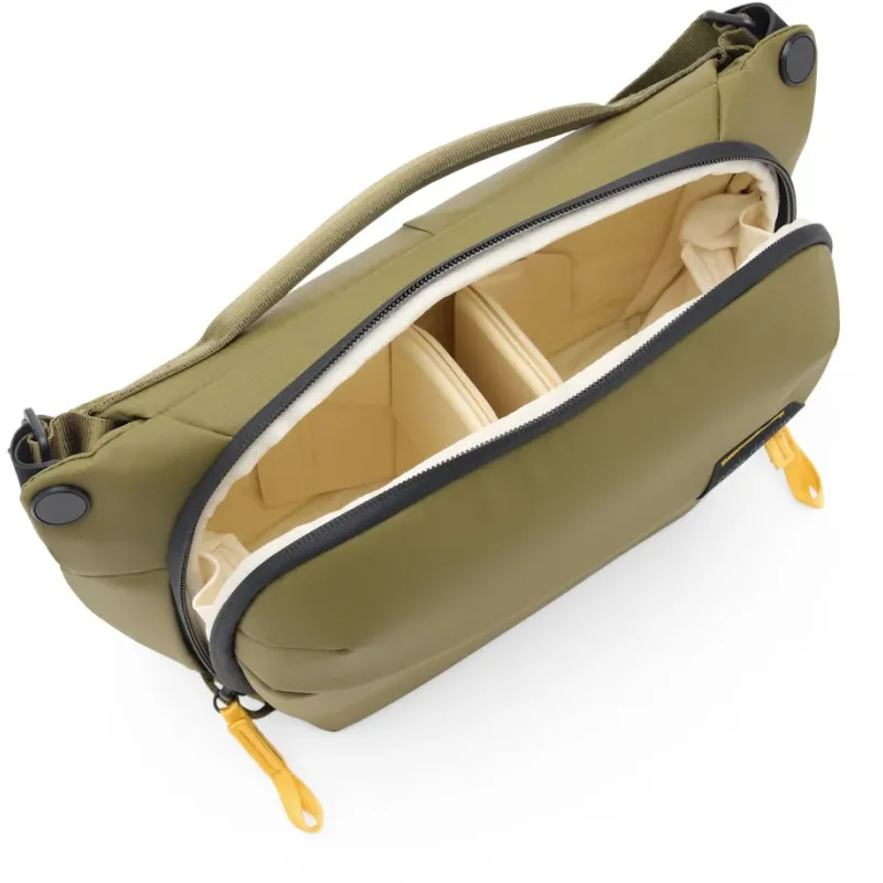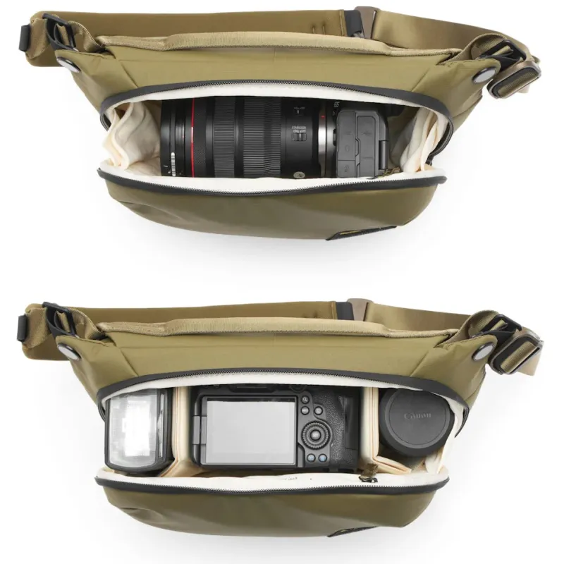 The Everyday Sling has customizable padded dividers for efficient organization of camera equipment and personal items, ensuring quick access to your gear.
