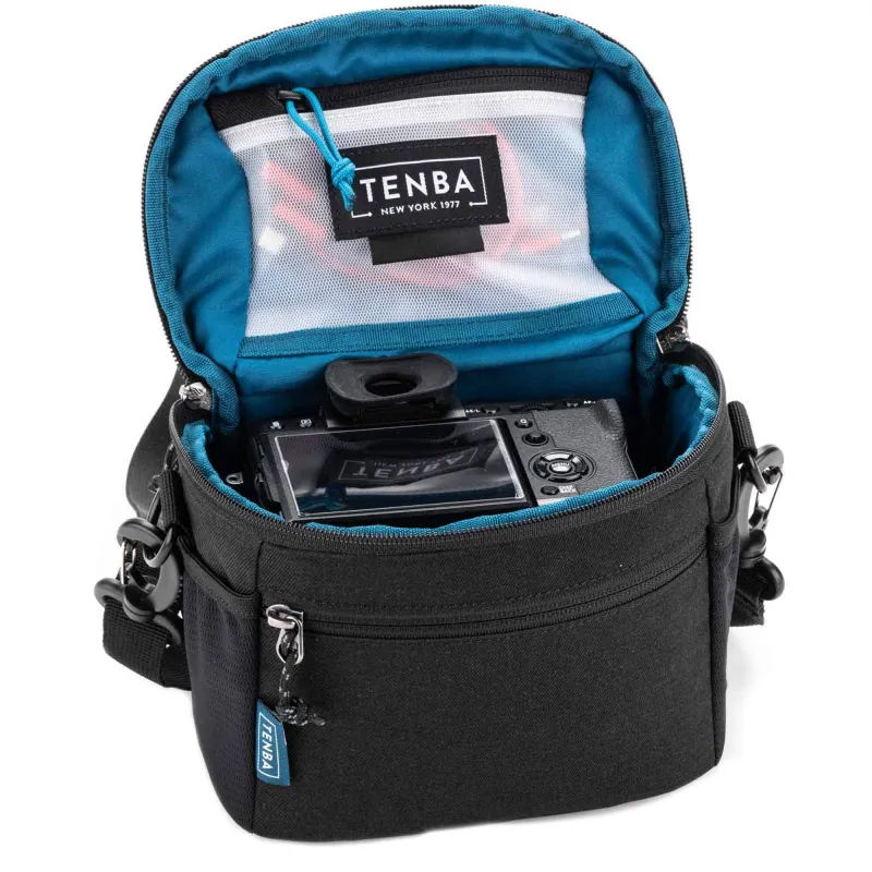 The black Tenba V2 7 Shoulder Bag is a convenient and sturdy choice for carrying your camera kit and more. The bag has enough space for mirrorless or DSLR camera with one to two lenses. Made from water-resistant fabric with reinforced stitching and durable YKK zippers, the bag keeps your gear safe and secure in various conditions. The lid is designed to open away from your body so you can quickly access your gear. Stretch mesh side pockets accommodate your water bottle, tripod, or umbrella. An interior zippered pocket is ideal for small accessories like memory cards or spare batteries. Comfortably carry your bag with the removable shoulder strap.