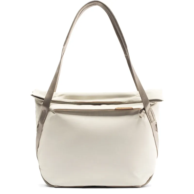 The 15L, bone-colored Everyday Tote Bag v2 from Peak Design is a generously sized tote bag that can accommodate the needs of an on-the-go photographer while providing a stylish way to carry any personal items. Its main compartment can be reached through a wide, top opening that features both a magnetic closure for fast access as well as a zippered closure for use under inclement weather. Inside the main compartment, the Everyday Tote Bag v2's two dividers can be configured according to the specific equipment being carried. The dividers are foldable, and can cradle curved surfaces such as the grip of a camera with an attached lens. During use, the foldable dividers enhance protection between those curved surfaces and adjacent items while minimizing the area between them for more efficient use of the main compartment's space.