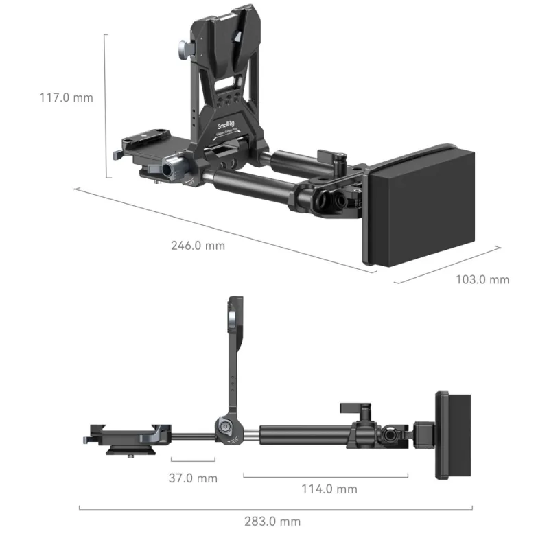 The mounting system has a maximum stretching distance is 36.5mm, which meets the needs of cameras of different sizes and improves compatibility. Locking and unlocking the rod is done with a toggle lock, which is quick and time saving without tools.