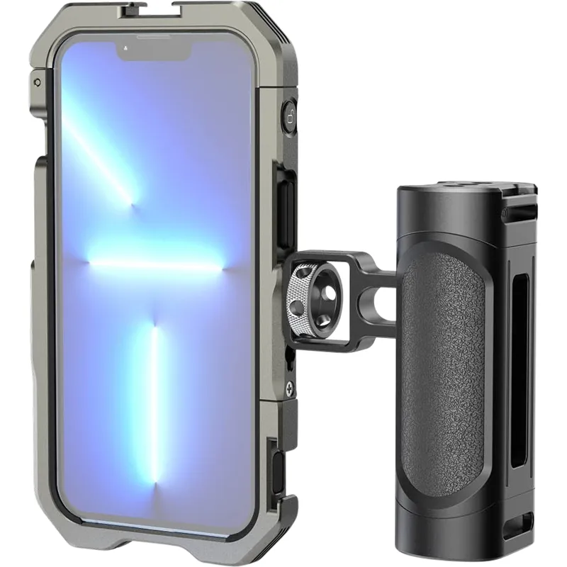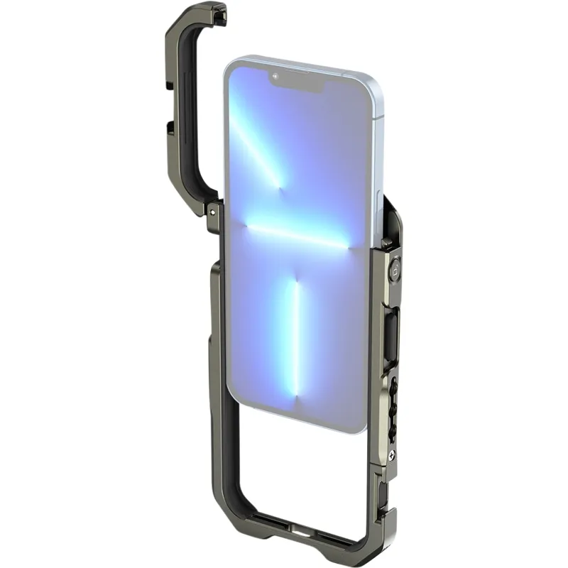 SmallRig handheld Kit for iPhone 13 3735 is a perfect mobile phone video rig for vlogging, mobile filmmaking, commercials, etc. The kit comes with a cage specially designed for iPhone 13 and a side handle for a more stable handheld phone shooting. The cage features 1/4"-20 anti-twist threaded holes and cold shoes that support accessories as Tripod BUT2429, Microphone 3452 and LED Light 3286, etc. It supports M-mount lens to upgraded the video quality. It gives access to iPhone buttons, ports, and ultra-wide angle lens thanks to its hollow design. The metal full cage with built-in shims prevents scratches, reduces vibration. The cage enables horizontal and vertical shooting.