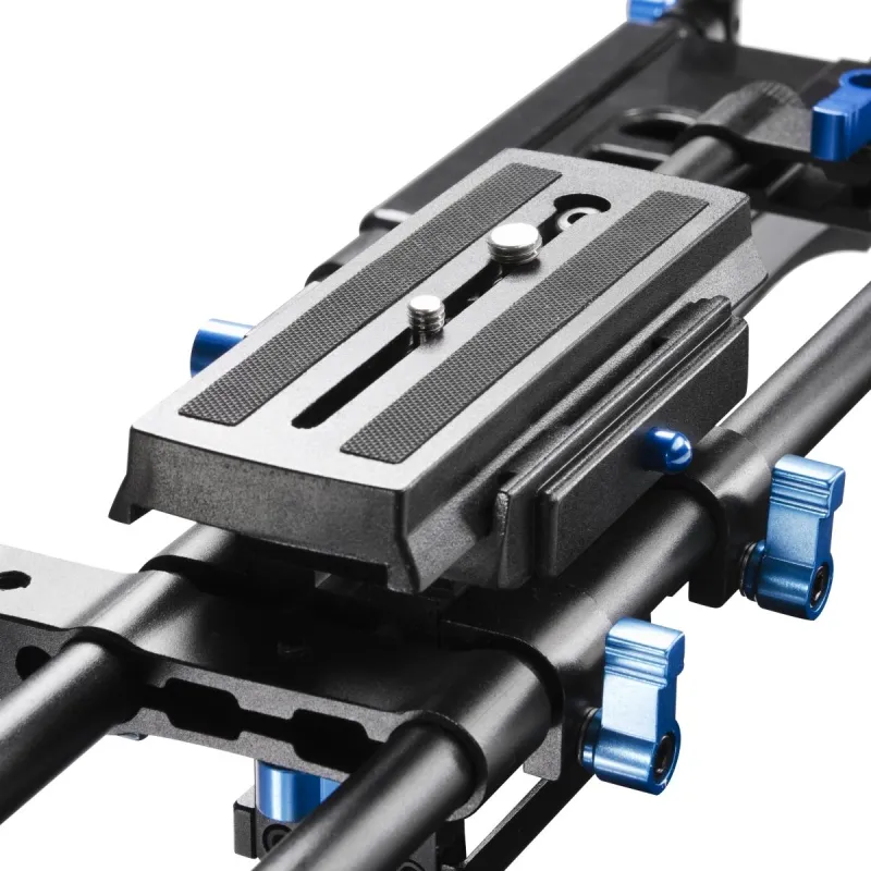 The used material, black anodized aluminum, ensures a very low weight and a high stability of the rig. Its workmanship is very high quality and it is very sturdy.