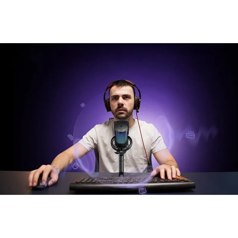 Elektretinė kondensatoriaus kapsulė fiksuoja garsą visomis kryptimis, todėl mikrofonas puikiai tinka tiek solo srautams, tiek grupinėms diskusijoms. Dažnių atsakas 20 Hz - 20 kHz ir aukštas signalo ir triukšmo santykis (73 dB) užtikrina aiškų ir dinamišką garsą. Mikrofono dizainas pagrįstas tvirta baze, su galimybe įjungti mikrofono stebėjimą ir RGB režimo perjungimą, užtikrinant tiek naudojimo komfortą, tiek estetiką.