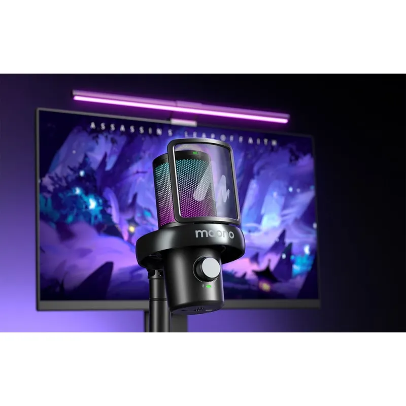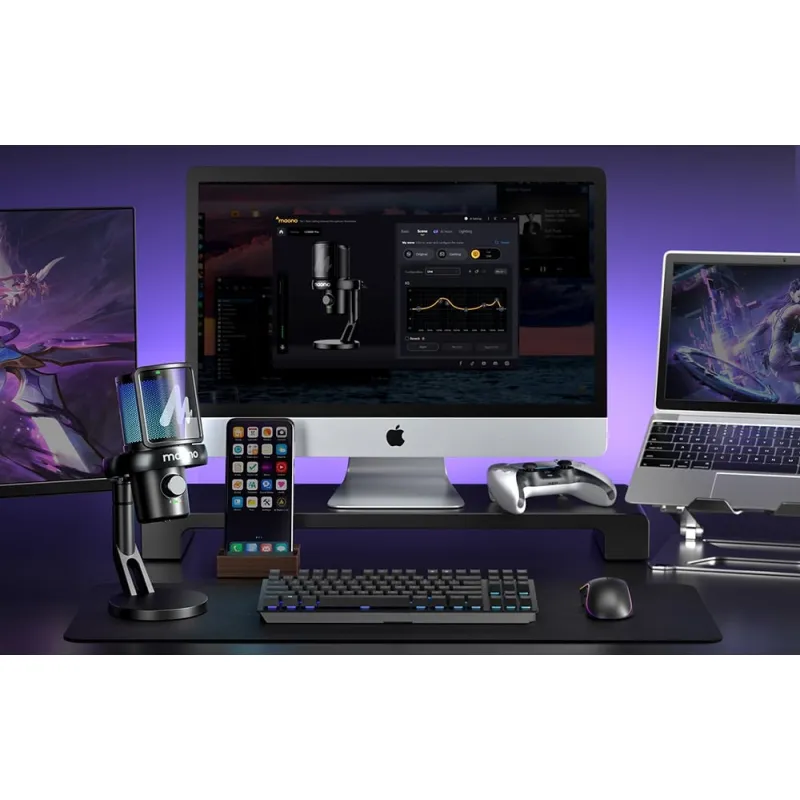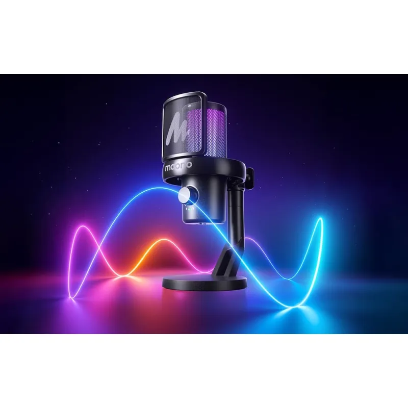 Maono DGM20S yra USB kondensatorinis mikrofonas su aktyviu triukšmo slopinimu ir RGB apšvietimu, puikiai tinkantis žaidėjams ir transliuotojams.
