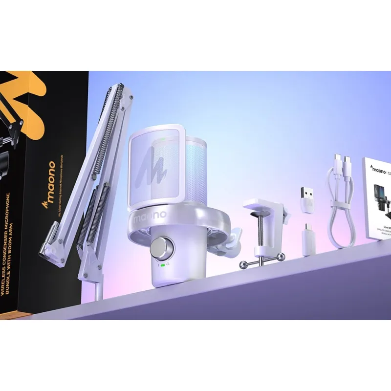 Maono DM40 S Pro yra belaidis žaidimų mikrofonas su AI technologija ir viršutine stovo dalimi, kuris siūlo studijos kokybės garsą, intuityvų valdymą ir įvairius naudojimo režimus (žaidimai, vlogai, balso įrašymas). 16 mm kondensatoriaus kapsulė ir 48 kHz / 24 bitų mėginių ėmimo dažnis leidžia įrašyti garsą su dideliu detalumu ir plačiu dažnių diapazonu (20 Hz - 20 kHz).